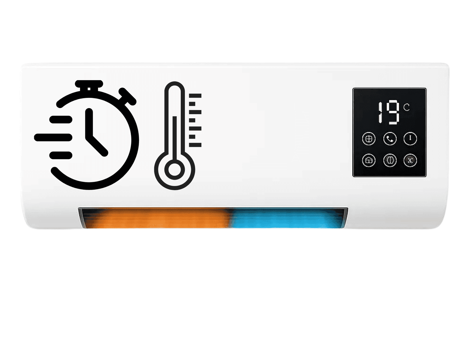 Lengvai montuojamas, šildo arba vėsina patalpas iki 120 m2 vos per kelias minutes, sunaudodamas mažai energijos.